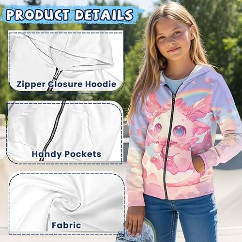 Material: Girls Zip up hoodie is made of polyester fabric, which is soft and cozy, suitable for spring, fal, winter