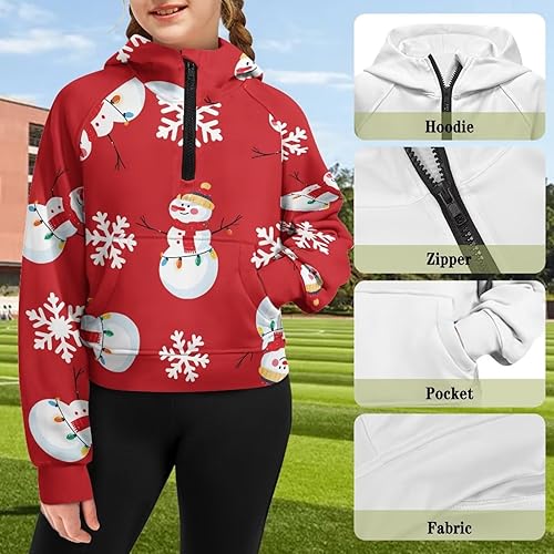 Girls Zip Up Hoodies Crop Sweatshirts with Kangaroo Pockets for Teen Girls Long Sleeve Pullover Clothes(Snowman,11-12 Years)
