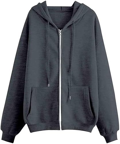 Stylish Design: Zip-up hoodie, hooded mock collar, Lined hood, zipper garage keeps chafe in check, with thumbholes through the cuffs, front pockets, hooded sweatshirt for girls, casual long sleeve tops for girls, loose fit hoodie sweatshirts with pockets, solid color hoodie jackets, fall clothes for girls
