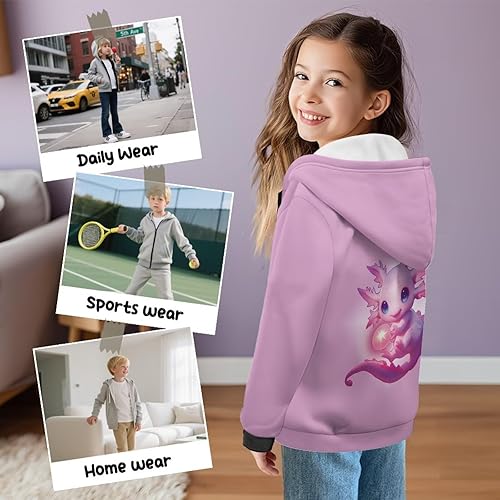 【Kids Zip Up Hoodies】Crafted from high-quality Polyester + Fleece lining, kids hooded sweatshirt is soft, comfortable, lightweight, breathable, skin-friendly. Whether heading to school, playing outdoors, or staying at home, it keeps your children warm and cozy all day long without being overly bulky, suitable for early spring/ fall/ autumn/ winter