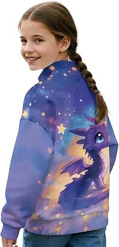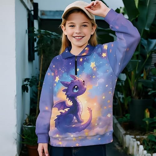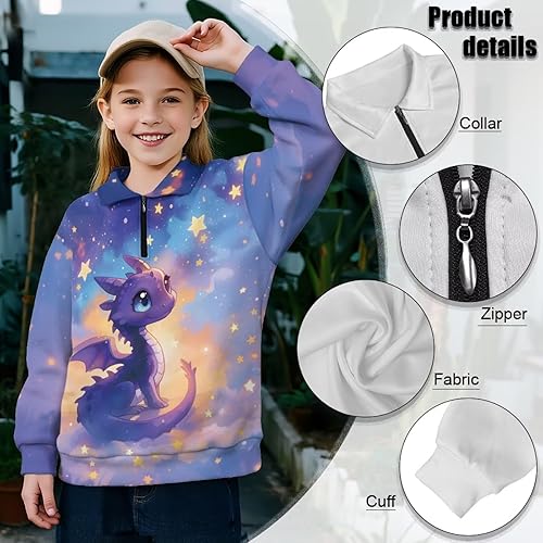 【Features】Girls long sleeves sweatshirt with quarter zipper collar, drop shoulder, no hood, long sleeves, ribbed cuffs, and elasticized hem offer a snug fit. Quarter to half zipper design makes it easy to adjust the neckline to ensure the comfortable temperature at any time—zip it up for warmth on cold days, then unzip it slightly during playing. The zipper is child-friendly, preventing snagging and scratching, and easy enough for little hands to operate independently