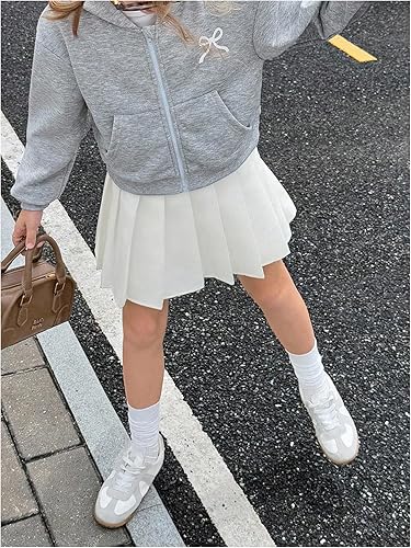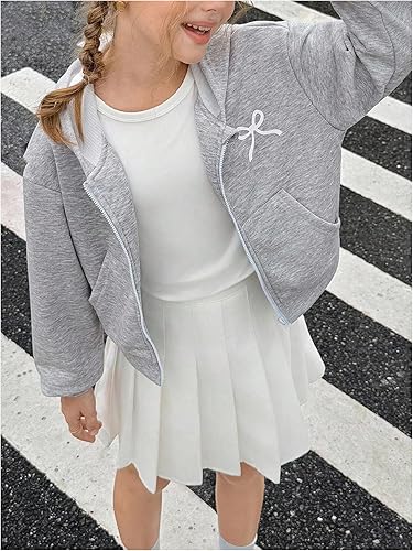 This girls hoodie features a full front zipper, ribbed cuffs and hem for a snug fit, and a bold bowknot print that adds a cool and adventurous vibe