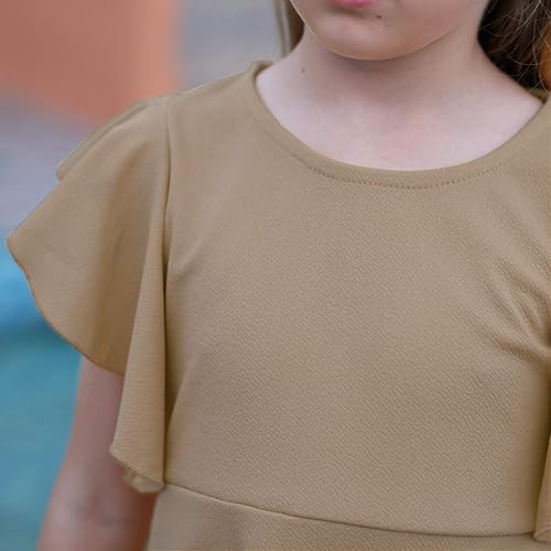 Styles and Features: Stylish and Unique Casual Style, Ruffle Trim Flutter Sleeve, Fit and Flare Design, Back Zipper, Two Side Pockets, Round Neck, Above Knee Length, No lined. The material is soft, stretchy and easy to wear.