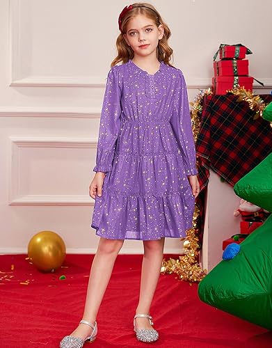 Elegant Star Pattern: This girl's dress showcases an enchanting starry design with gold foil accents, making it ideal for festive occasions. The sparkling stars lend a whimsical touch, perfect for making your little one feel like a star at Christmas parties and holiday gatherings.