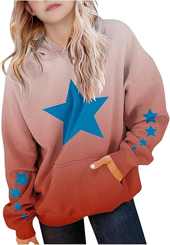 Fashion Style: Embrace the cute and preppy Y2K fashion with these baggy hoodies, featuring star prints and gradient colors for a trendy look. The oversized, loose fit sweatshirts are fall and winter favorites, offering a stylish, relaxed vibe for teen girls and boys. Perfect for back-to-school clothes or casual outings, they suit various ages 2-14 years.
