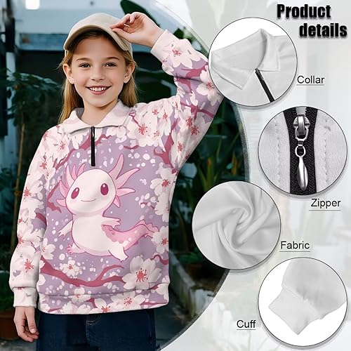 Material:The kids quarter zip pullover girls feature an ultra-soft, skin-friendly material that's gentle on delicate skin. Ideal for active children, these cozy long sleeve shirts easily transitions from the crispness of spring/fall to the coolness of winter