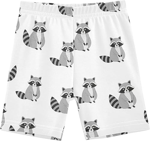 Gray White Raccoon Girls Bike Shorts Toddler Soft Cotton Active Biker Shorts(Multi-gray White Raccoon,10 Years)