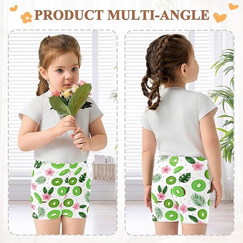 Green Fruits Leaf Girls Bike Shorts Toddler Soft Cotton Active Biker Shorts(Multi-green Fruits Leaf,10 Years)