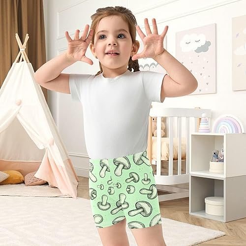 Green Mushroom Girls Bike Shorts Toddler Soft Cotton Under Dress Dance Shorts(Multi-green Mushroom,4T)