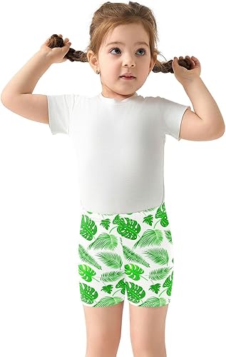 Green Palm Leaves Girls Bike Shorts Toddler Soft Cotton Active Under Dress Shorts(Multi-green Palm Leaves,6 Years)