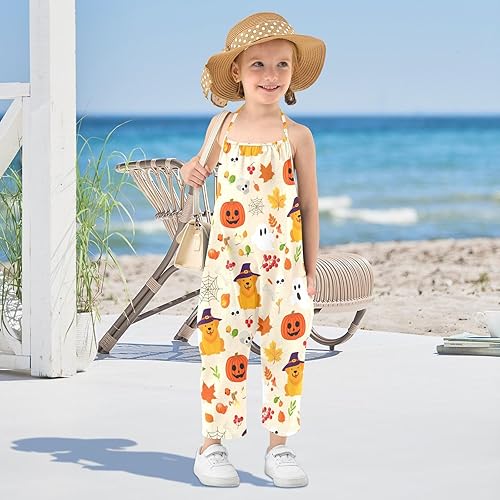 Halloween Dog Pumpkin Beige Toddler Girls Jumpsuit Sleeveless One Piece Romper Pants Summer Clothes for Travel,1T(3T)