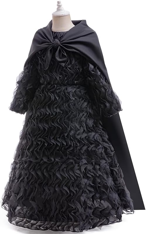DRESS DESIGN: You will get a piece of elegant black ruffled dress with textured fabric for a classic witch appearance and an elegant satin cape.Includes a tall, pointed witch hat with distinctive spiral ribbing detail for an authentic magical look.