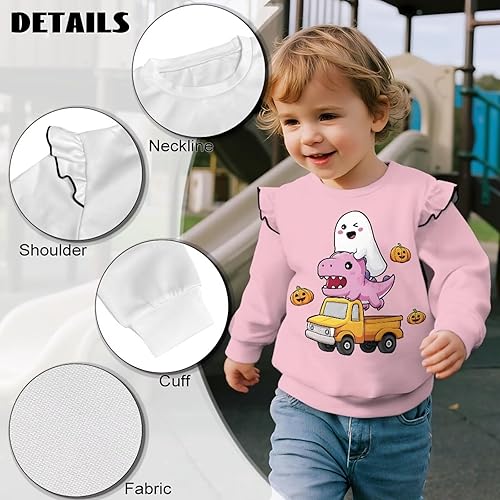 【Fabric】- Made from 95% Polyester + 5% Spandex blend, this kids' sweatshirt feels incredibly soft against delicate skin while lightweight and breathable fabric keeps her cool during playdates and warm on breezy days. Moisture-wicking properties help her stay dry during active fun!