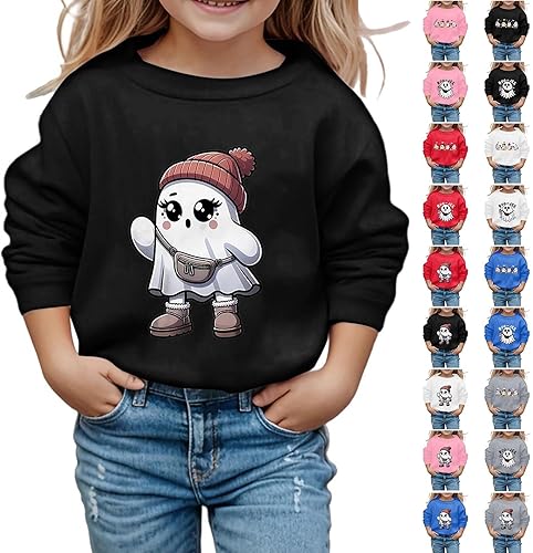 Halloween Sweatshirts for Girls Boys Cute Funny Ghost Graphic Hoodies Long Sleeve Crewneck Pullover Sweatshirt(Black-b,11-12 Years)