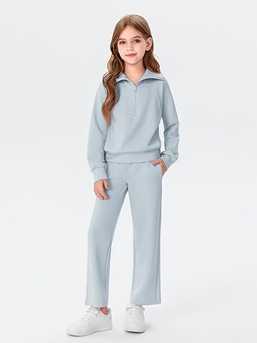 Features: Sweatshirts for girls feature half zip design allows adjust the zipper freely according to the temperature, casual long sleeve top, lapel collared pullover sweatshirt, loose fitted; The wide leg sweatpants combined a comfortable elastic waistband with side pockets, creating a stylish and active silhouette