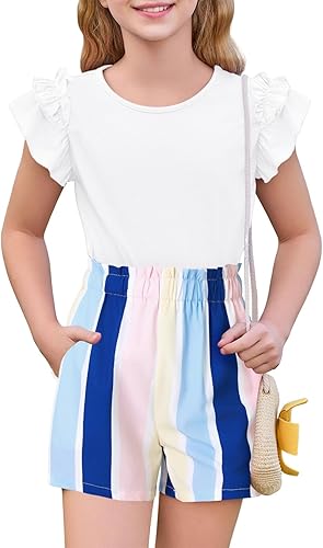 Trendy Features: Ruffled short sleeves with a layered design add more cuteness, while high waist paper bag shorts provides a more fashionable and pretty look. The elastic waist and wide-leg silhouette not only ensure comfort for the child but also help maintain a unique style