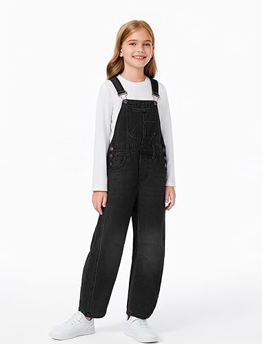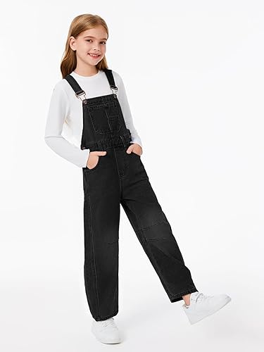 Features: Girls jean overalls features adjustable straps, solid color, front big pockets, tapered knee, wide leg, cross back design. These girls overalls offer a loose fit style that embraces timeless denim fashion