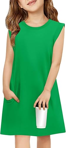 Design: This girls' summer dress features a solid color with a classic crew neck design, providing a clean and timeless look. The unique cap sleeves add a cute and playful touch while still keeping the arms cool and comfortable