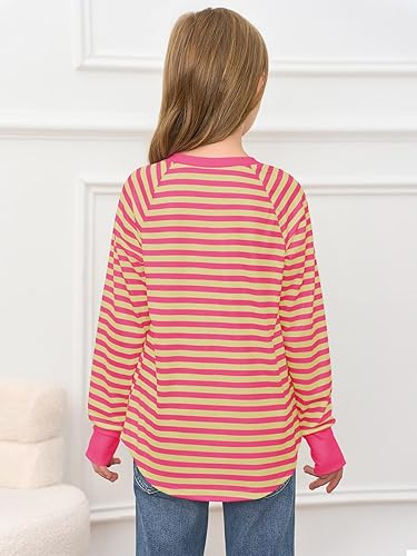 Features: Long sleeve shirts for girls loose fit, casual pullover tunic round neck tops with thumb holes, casual t-shirt, crew neck sweatshirt for kids, cute fall tops with curved hem, classic stripe colors top. The curved hem will bring some much needed “oomph” to your day-to-day looks