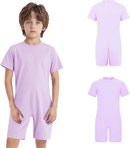 Hansber Kids Girls Boys Special Needs Adaptive Clothing Anti-Strip Romper Short Sleeve Zip Back Jumpsuit Playsuits Lavender 6 Years