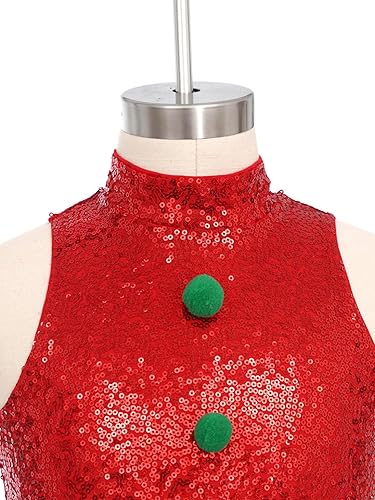 Hansber Kids Girls Christmas Dance Jumpsuit Sleeveless Sparkly Sequins Bell-Bottom Jumpsuit for Xmas Party Red 6 Years