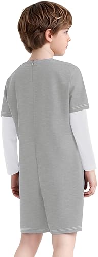 Hansber Special Needs Adaptive Clothing for Children Long Sleeve Short Leg Zip Back Jumpsuit Autism Sensory Romper Gray White 12 Years