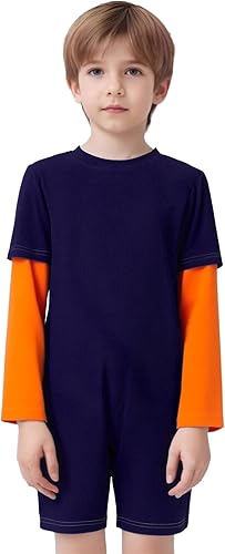 Hansber Special Needs Adaptive Clothing for Children Long Sleeve Short Leg Zip Back Jumpsuit Autism Sensory Romper Navy Blue Orange 12 Years