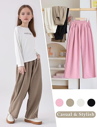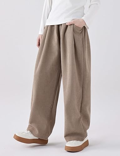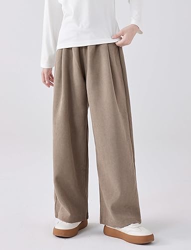 Stylish & Comfortable – These Girl's Solid Corduroy Wide Leg Pants feature a high waist and elastic waistband for a snug yet flexible fit, making them perfect for casual streetwear and everyday wear.