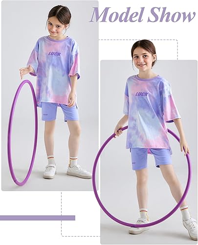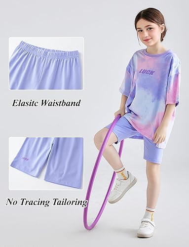 TRENDY DESIGN: This girls short sets features a stylish drop-shoulder tee paired with fitted biker shorts. The tie dye shirt kids love comes in vibrant, eye-catching patterns for a fun summer look