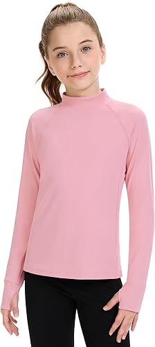 Material: The girls long sleeve athletic tops are made from 75% Nylon 25% Spandex, delivers comfort, lightweight, stretch, breathability.