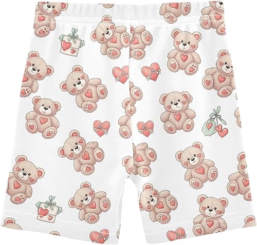 Hearts Bear White Girls Bike Shorts Toddler Soft Cotton Under Dress Cartwheel Shorts(Multi-hearts Bear White,5T)