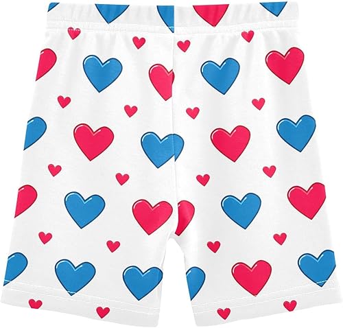 Hearts Blue Red Girls Bike Shorts Toddler Soft Cotton Under Dress Dance Shorts(Multi-hearts Blue Red,10 Years)