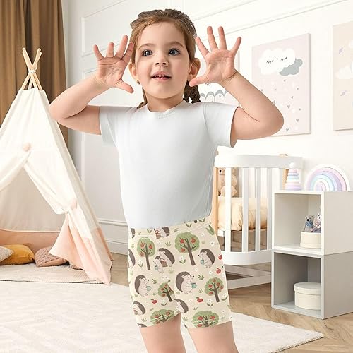 Hedgehog Tree Beige Girls Bike Shorts Toddler Soft Cotton Under Dress Cartwheel Shorts(Multi-hedgehog Tree Beige,4T)