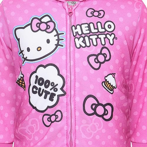 Dress Your Toddler Girl in This Adorable and Comfy Hello Kitty Zip-Up Hooded Sweatshirt Featuring Her Favorite Sanrio Character; Hello Kitty! Perfect as 12 Months Girl Clothes, 18 Months Girl Clothes, 2T Girl Clothes, 3T Girl Clothes, 4T Girls Clothes, Size 5 Girls Clothes, Size 6 Girls Clothes, Size 6X Girls Clothes, Size 7 Girls Clothes, Size 8 Girls Clothes, Size 10 Girl Clothes and Size 12 Girl Clothes