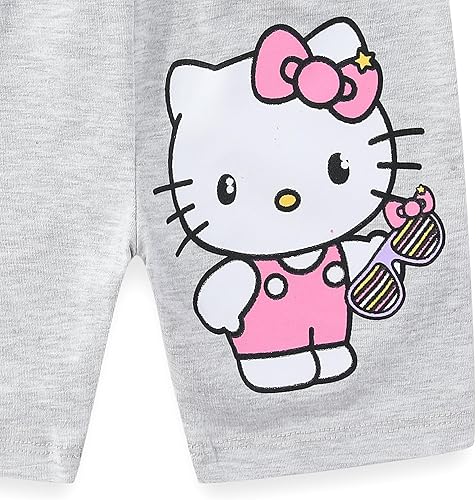 Officially Licensed Hello Kitty Sanrio Girls 2 Piece Jersey Short Sleeve T-Shirt and Bike Shorts Set for Big Kids.
