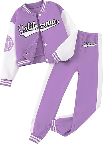 FEATURES: Cute outfits for girls, 2 piece workout set, including graphic long sleeve button front jacket and elastic waist sweatpants, stylish and cool style