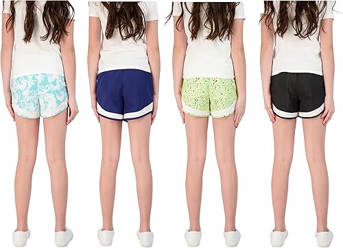 Exercise Shorts for Girls: This pack of girls running shorts includes 4 distinct pairs of shorts. The proper activewear is an essential component of any girl's healthy exercise, running, or sports routine. Gear up with a pack of high-quality athletic shorts!