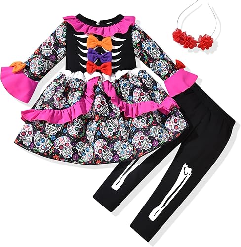 Premium Material: Toddler Girl Day of The Dead Outfits is made of high quality cotton blend, exquisite workmanship, soft texture,skin-friendly and cozy, brings your little girls comfortable feelings all spring, autumn and winter