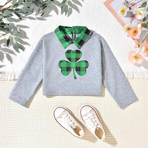 ✿UNIQUE DESIGN: Toddler little girl 2-piece set features a long sleeve contrast collar pullover sweatshirt top with a stylish letter graphic print, matching a plaid skirt leggings for a complete outfit. The stylish letter print adds a touch of fashion to your little one's look and is perfect for everyday wear, casual occasions, and even sports activities.