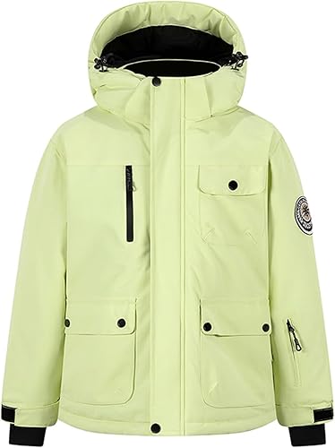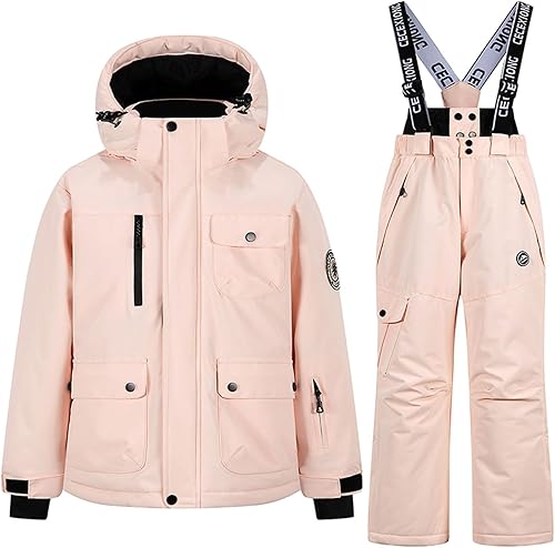 hlysgo Kids Insulated Snow Jacket and Ski Bib Overalls Snow Pants Snowboard Snowsuit Boys Girls Overalls for Snowmobiling(01 Pink,13 Years)