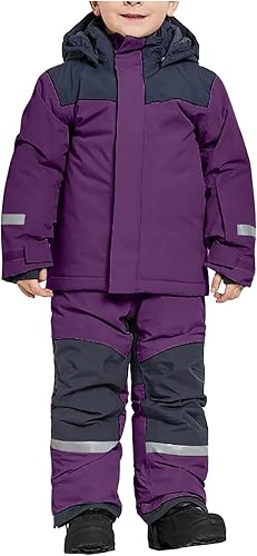 hlysgo Kids Snowsuits 2 Piece Ski Suit Waterproof Toddler Winter Fleece Lined Hooded Jacket and Ski Bib Pants for Girls Boys(01 Red,10 Years)