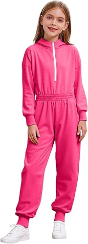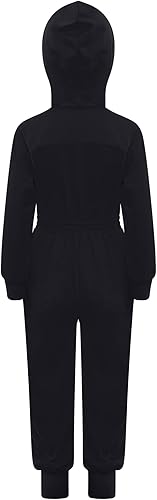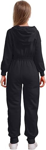 Hoodie Romper for Girls Casual Solid Color Long Sleeve Dungarees Zip Up Jumpsuit One Piece Overalls Playsuit(Black,10 Years)