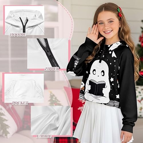 Features: Athletic workout hoodies,girls pullover sweatshirt,long sleeve ,1/2 zip up collar, cropped length,stand collar,kangaroo pockets,relaxed fit,crop to