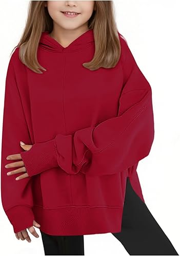 Hoodies For Girls With Thumb Holes Pullover Sweatshirts Fashion Long Sleeve Cute Tops Oversized Winter Preppy Clothes(Th26-pink,13-14 Years)
