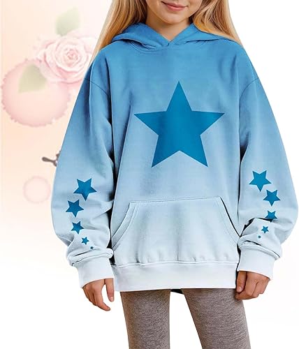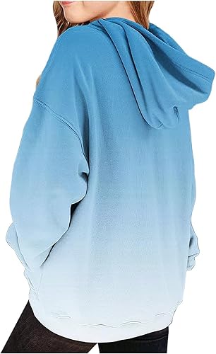 Hoodies for Teen Girls Fleece Long Sleeve Crewneck Sweatshirt Gradient Color Hoodie Cute Pullovers Tops Fall Fashion Clothes(K02,10-11 Years)