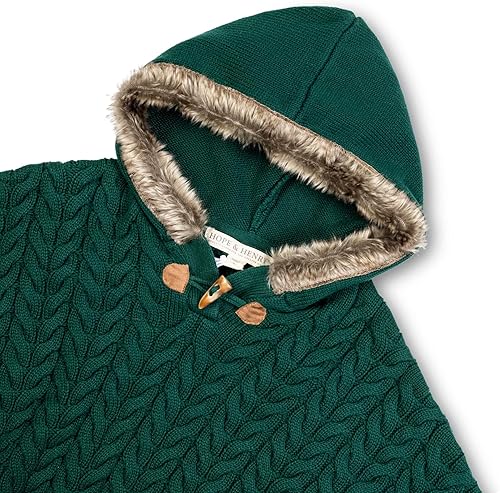 This fabulous cozy knit cape is both a show stopper and perfect outfit topper! Featuring a hood with faux fur trim, rib knit edges, and faux leather button details, your girl will be the epitome of chic in this lovely piece.