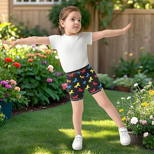 Horse Colorful Girls Bike Shorts Toddler Soft Cotton Under Dress Dance Shorts(Multi-horse Colorful,10 Years)