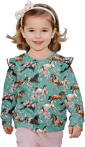 Toddler Long Sleeve Shirt: Long sleeve sweatshirt, crew neck t-shirt, ruffle shoulder sweatshirts, casual pullover tee tops, all over print hoodies no hood, novelty graphic sweater shirts, oversize fashion casual fall clothes for toddler kids girl