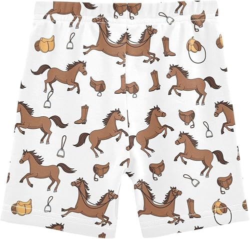 Horses Brown Girls Bike Shorts Toddler Soft Cotton Cartwheel Under Dress Dance Shorts(Multi-horses Brown,8 Years)