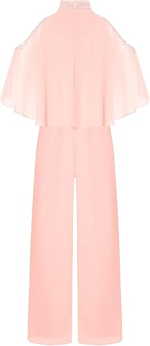 Hularka Girls Sparkly One Piece Jumpsuits Dressy Casual Cold Shoulder Mock Neck Wide Leg Jumpsuit Rompers Pink 14 Years